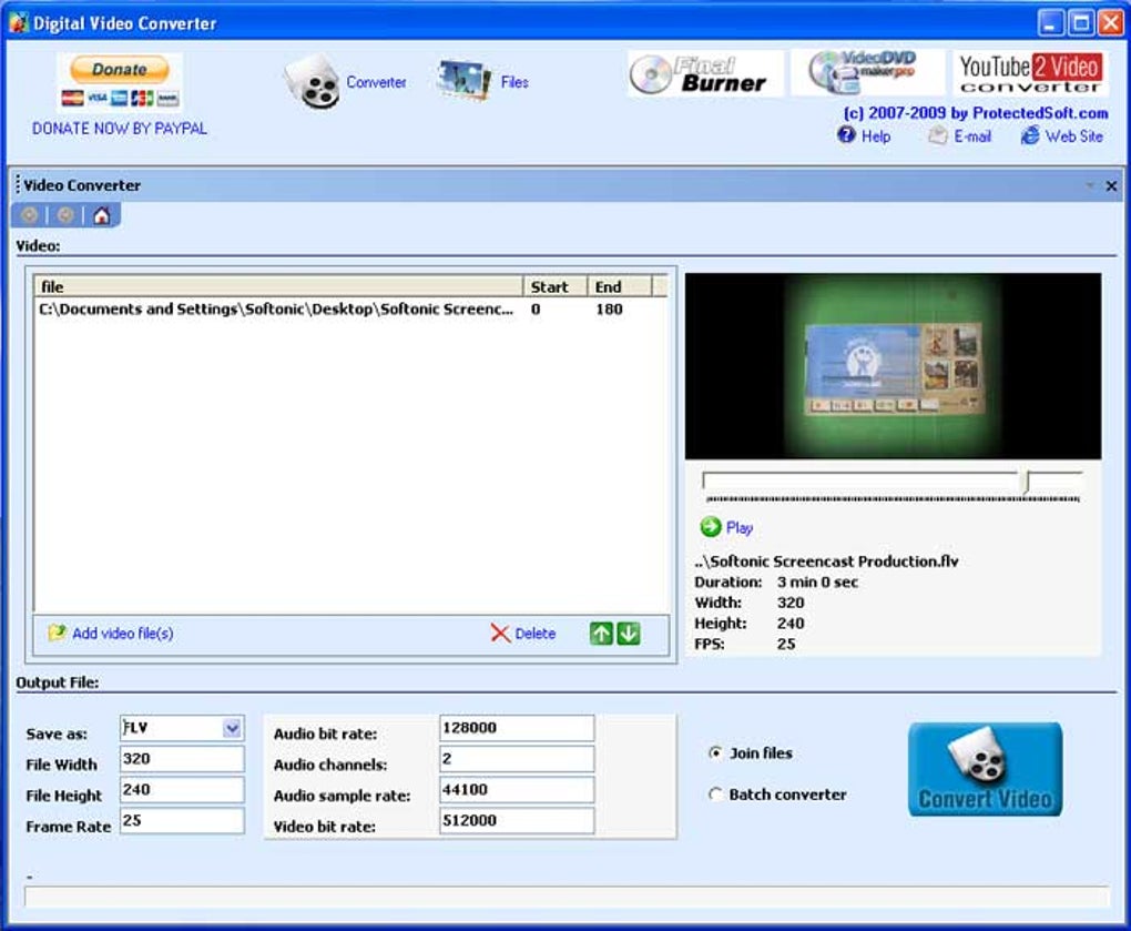Para usar o Digital Video Converter basta você escolher os vídeos que deseja converter, determinar o formato e o tipo de compressão de áudio e vídeo. Também pode configurar a resolução final da imagem.